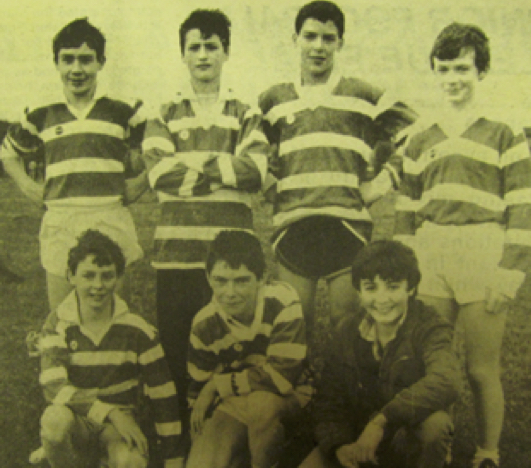 December ’86. The winning team in the U14 VEC County Cross Country Finals in Rathkeale. L – R Standing: Michael Dowling, Pat Lane, John Corbett and Michael Quaid. Front Row: Maurice Hurley, Brendan McGrath and Darren Dowling.